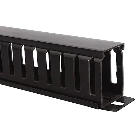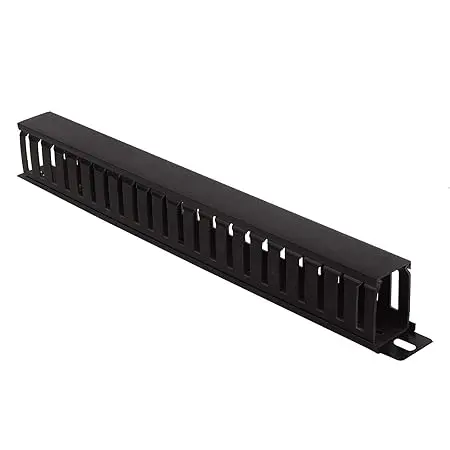 Keep your cables organized on a rack mount, Server Room, Wiring Closet, Desk cable management, reducing the possibility of disconnections and keeping your cables organized. 1U Finger Duct Cable Management Panel mounts to a standard 19 inch; rack to help you organize horizontal cabling, through a covered cable duct. The 1U cable organizer features a removable top cover that makes it easy to add or remove bundled cables quickly. The duct also offers a series of fingers on either side Made of high-quality metal and PVC, the cable manager is a durable solution for your server room, wiring closet, desk cable management etc.