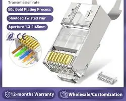 Upgrade your networking setup with our Premium RJ45 Cat7 Metal Shielded Connectors. Specifically designed for Cat7 Ethernet cables, these connectors ensure high-speed data transfer and maximum durability for professional environments.