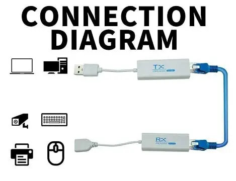 • This USB extension adapter allows you to connect your USB device to your computer at a distance of up to 200 meter with the help of a Cat5/Cat5e/Cat6 patch cable (LAN cable not included). This adapter will allow you to have your USB cameras, printers, web cams, keyboard/mouse extensions or any other USB device exactly where you want it without having to move around your computer.