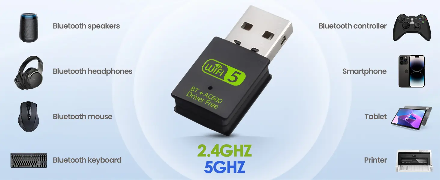 • [Blazing-Fast Dual Band Wi-Fi] Experience lightning-fast internet with our Wi-Fi adapter, offering 433Mbps on the 5GHz band and 150Mbps on the 2.4GHz band. The 2.4GHz frequency is perfect for day-to-day browsing and office tasks, while the 5GHz band is ideal for smooth 4K streaming and lag-free gaming.